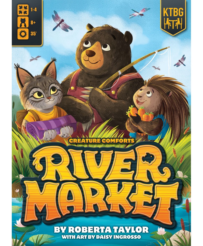 River Market is the new standalone game set in the cozy world of Creature Comforts. As forest critters, players take turns moving around the river market, activating the buildings they visit, hiring helpful new employees, and adding their own new businesses. Gameplay is quick, and before you know it, the market will be closed for another day. Will you make the biggest contribution to growing the river market? You'll have to play to find out!