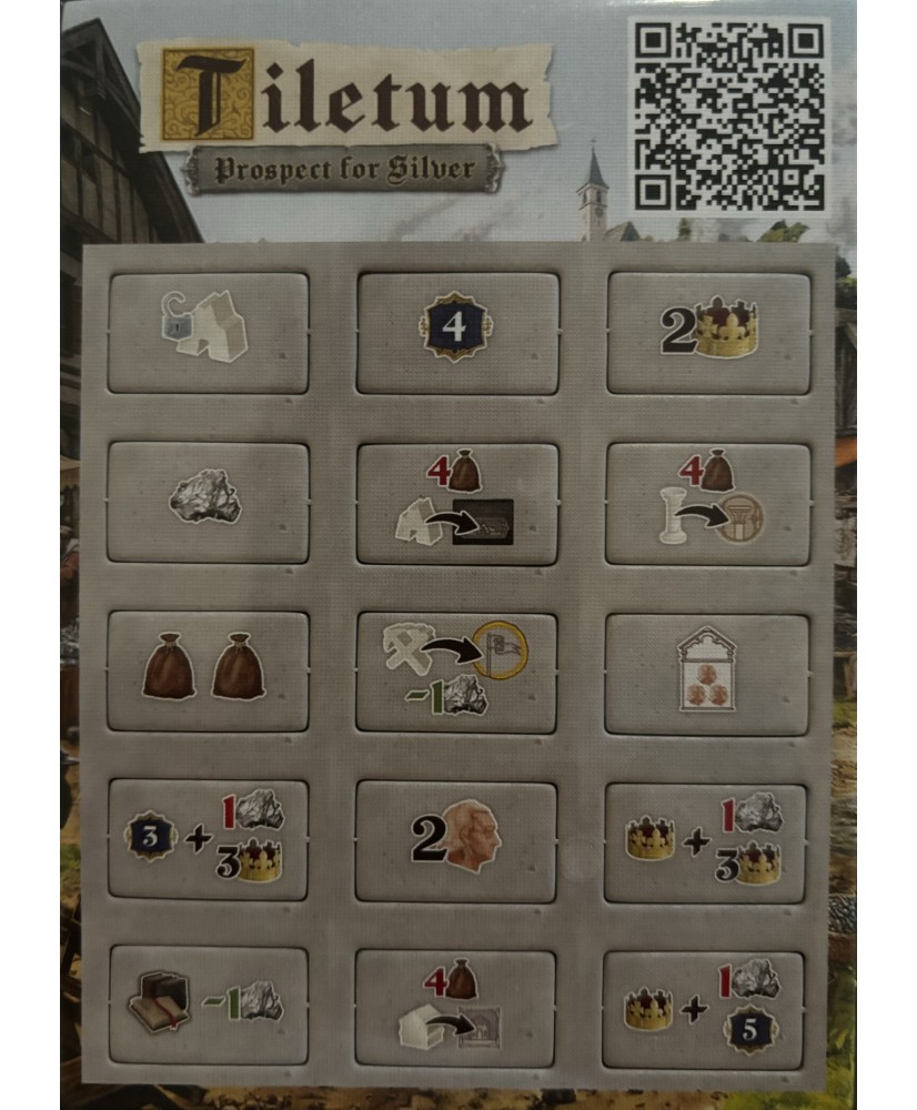Set of Stone Tablet tiles, that match the ones printed on the Underground maps side boards in the Prospect for Silver. These are randomized during setup, to bring more variability.