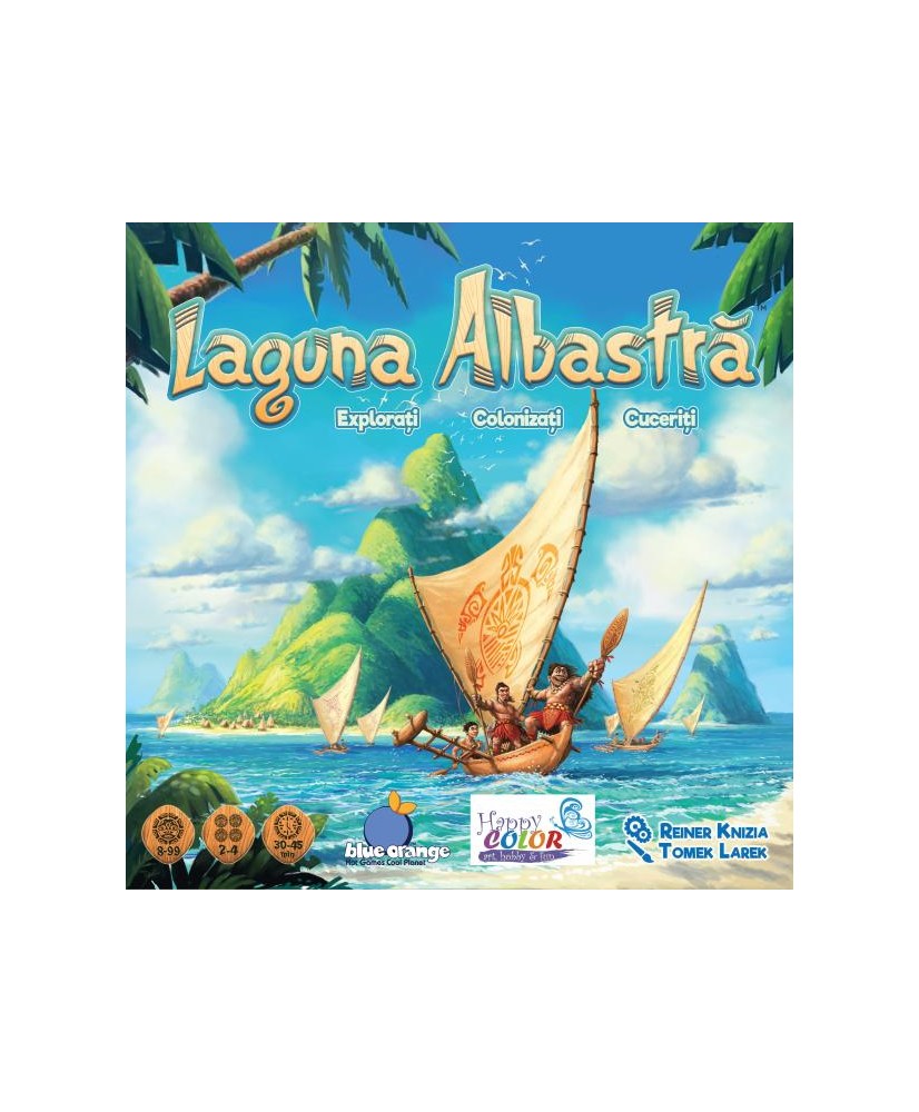 Blue Lagoon is an area control and set collection game in which players manage a group of settlers spreading out over the islands of a newly discovered archipelago. The game is played over two phases (the exploration phase followed by the settlement phase). Over the course of both phases, you will expand your presence on the board by adding one new token each turn (either a settler or a village token). The goal is to collect the resources scattered over the map by placing your tokens on top of them. In the first phase, you can place a new token anywhere you like, as long as it is touching either the lagoon OR one of your previously played tokens. In the second phase, the board is cleared, except for the villages, and now you can only expand from the villages you played in the first phase! At the end of both phases, players score points for the sets of resources they collected. Most points wins.