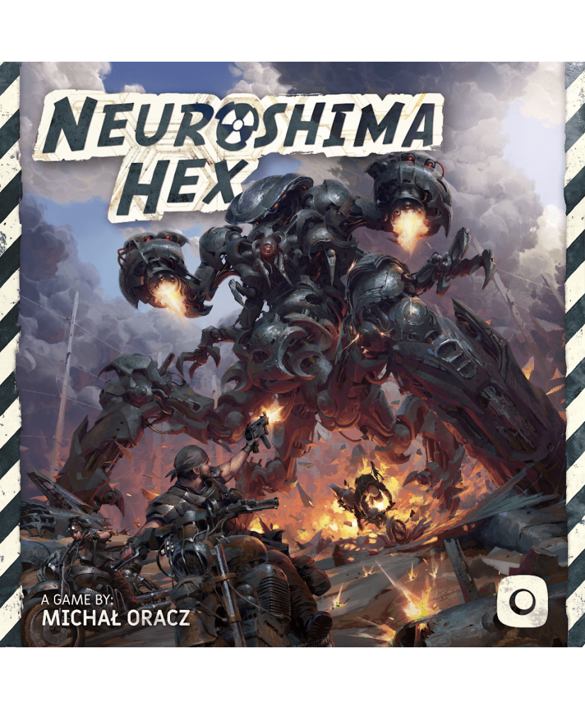 Neuroshima Hex! is a strategy game set in the post-apocalyptic world of Neuroshima, a Polish role-playing game. Each player leads one of four armies: Borgo, Hegemonia (Hegemony), Moloch, and Posterunek (Outpost). Each army deck consists of 34 tiles: soldiers, support tiles, and special actions. You win when all enemy headquarters are destroyed or when your headquarters is the least damaged at the end of the game. The second edition of Neuroshima Hex!, released at Spiel 2007, had updated graphics and a new, larger board; a special expansion pack sold at the same time included the Neuroshima Hex! Doomsday Machine 1.0, a fifth army that could be used against any of the other ones. The first French edition of Neuroshima Hex!, released in 2008, included an additional four Mercenary tiles. The first English edition from Z-Man Games that same year includes the Mercenary tiles and the Mad Bomber tile. Neuroshima Hex! 3.0, released in 2013, includes rule corrections, the Doomsday Machine army (for five armies in the NH base game), a solo variant with 55 puzzle cards that present you with challenging situations, and new three-player variants: Deathmatch; Deathmatch with scores; one player vs. a team; and a team match (with one player playing two armies). The game is also expanded by Unofficial Neuroshima Hex! expansions, available here on BGG. Integrates with Neuroshima Hex! Duel Awards 2009 BoardGamer.ru Recommendation 2007 Recommendation in Gry-planszowe polish Game of The Year contest Components (Portal Games 2014) 1 game board 2 rulebooks (English and German) 4 armies with 35 tiles each (The Outpost, Moloch, Hegemony, Borgo) 8 HQ Damage tokens, 24 wound tokens, 8 net tokens 4 counters 4 army Reference Charts (English/German) 55 cards with Hex Puzzles (English)