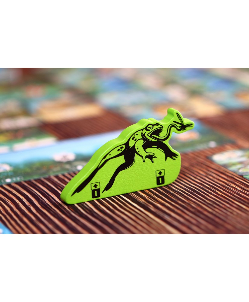 A large green wooden frog replacing the Jumping Frog card.