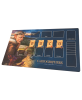 Timeline: Music & Cinema is a card game played using 110 cards. Each card depicts a historical event on both sides, with the year in which that event occurred on only one side. Players take turns placing a card from their hand in a row on the table. After placing the card, the player reveals the date on it. If the card was placed correctly with the date in chronological order with all other cards on the table, the card stays in place; otherwise the card is removed from play and the player takes another card from the deck.