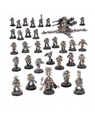 This box comprises 1,207 plastic components, 41x Citadel 32mm Round Bases, 7x Citadel 50mm Round Bases, 1x Citadel 100mm Round Base, and 1x Warhammer: Horus Heresy Transfer Sheet containing 1172 high-quality waterslide transfers – featuring Legion iconography for the Iron Warriors and Salamanders – to decorate your miniatures.
