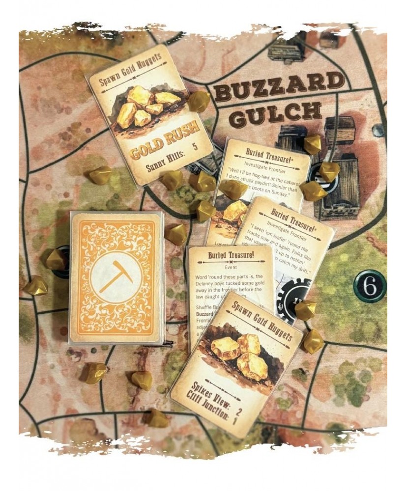 The Western Legends: Prospecting Deck adds more variety to your wild west adventures! Determining when and where gold nuggets become available to be mined. It also introduces brand new mining events! Making each game feel fresh and unique.