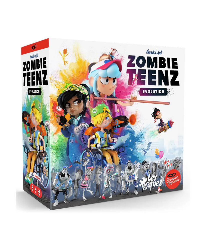 Zombies are attacking the entire town! Cooperate with your friends and launch an expedition to drive off the overwhelming hordes. Collect the 4 Ingredients and brew the antidote that will save the world! Zombie Teenz Evolution is the sequel to Zombie Kidz Evolution (#1 Kids' Game on BGG). It is a standalone game with a different set of rules, so you don’t need to have played the first game to jump into the second. The rules are slightly more advanced and will require a little more strategic thinking. Zombie Teenz Evolution follows the same general guidelines as its predecessor: a fast and simple game whose rules evolve from game to game through the opening of 14 ‘Mystery’ envelopes. By accomplishing special Missions, players unlock additional content that will provide a richer experience, while constantly renewing the enjoyment of the game. The icing on the cake: the two games are compatible! You will be able to play Zombie Kidz with your Zombie Teenz, and vice versa! More rules details to come...