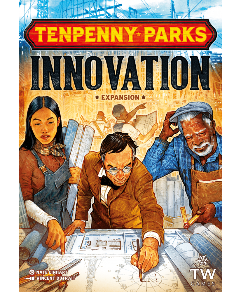 Innovation is an expansion for Tenpenny Parks, the worker and tile placement game where you compete to build the best vintage amusement park in town. In this new era of your park, you must lead your fairgrounds into the future with fresh ideas that will draw even more visitors to Fairview.