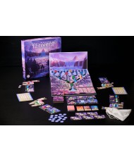 In each of 5 rounds of play, take turns paying camp cards (resources) to place your 3 tribe tokens into various slots along the rivers, to get the magic pearls you need. Pay more camp card resources to place higher up the rivers to pick pearls earlier. However, with clever placement and use of camp card powers, you can still get valuable pearls efficiently downstream. Use your Tribe tokens to block then collect magic pearls that flow down the 12 rivers. Collect pearls needed by villagers to ensure prosperity for the village at the bottom of the 12 Rivers.