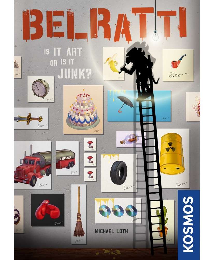 You are buying artwork for your museum, always trying to meet the current trends and finding genuine art from your associates. But the famous Belratti is trying to cheat his own fake paintings into your collection. In Belratti, players are split into two roles — buyers and painters — and are playing against the game. The game presents two cards as topics for which the buyers need to buy paintings. They ask for a certain number of cards, and the painters have to collectively meet this target number. The painters select cards from their hands they think will fit the most to one of the topics. Then additional cards are added as Belratti's fakes. All cards are shuffled upside down, then flipped up. The buyers then have to select all the cards from the painters, not the fake cards by Belratti. The roles change after each round. If too many fakes are bought, the players lose.