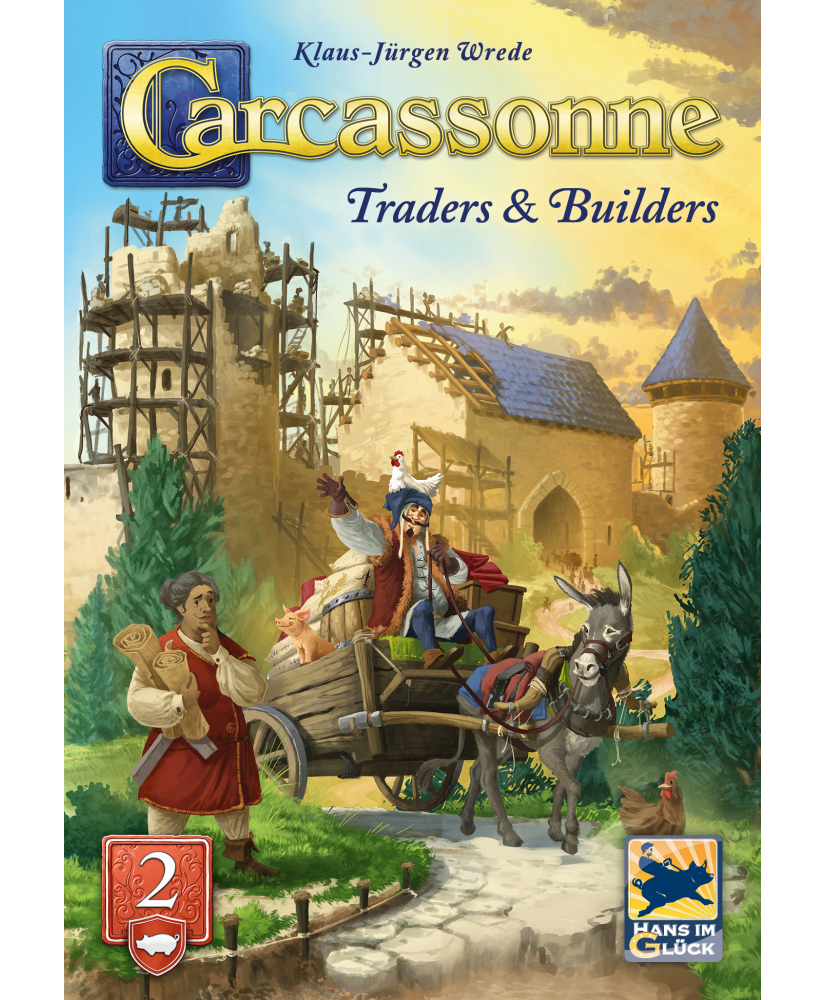 "In this expansion for Carcassonne, traders and builders arrive in the cities. Collect goods and send your pig to the fields for extra points. The builder speeds up the construction of your roads and cities.