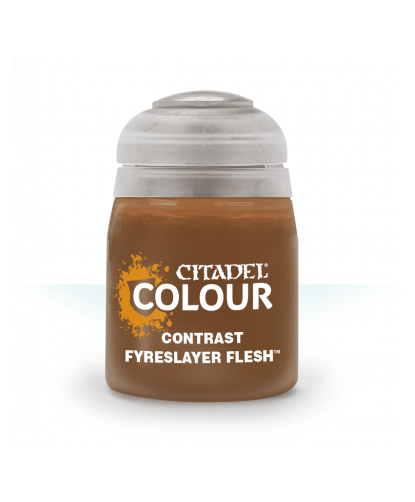 Citadel - Contrast: Fyreslayer Flesh - GW (29-31) (18 ml) este o vopsea de 18 ml perfectă pentru a picta miniaturile pentru a fi battle ready, fără efort. Vopselele Contrast au o consistență mai lichidă, dar un pigment puternic, și se folosesc peste o bază deschisă pentru a oferi culoare și dimensiune miniaturii dintr-un singur strat.