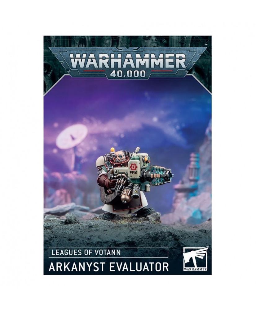This multipart plastic kit builds one Arkanyst Evaluator, a Science Guild field operator for your Leagues of Votann armies in games of Warhammer 40,000. These scientists go to war to test their experimental weapons, lending significant firepower to your force. They are armed with transmatter inverters, which can be fired on different settings, depending on the target. This miniature comes with a choice of two different heads – one with a helmet and one bare.