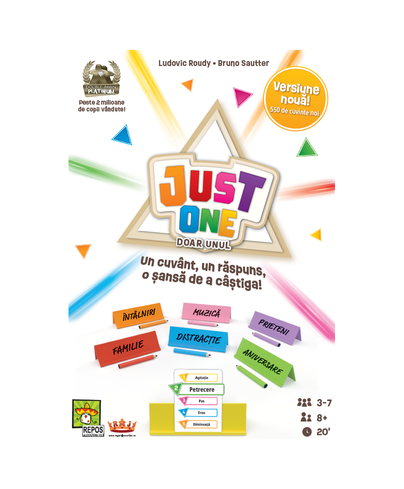 Just One este un joc de societate cooperativ în care jucați împreună pentru a obține cel mai bun scor! Obiectivul vostru în fiecare rundă este ca un jucător – jucătorul activ – să ghicească un cuvânt misterios pe baza indiciilor date de coechipieri.