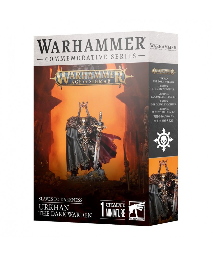 Celebrate Warhammer Day 2025 with Urkhan the Dark Warden, a brooding Chaos Warrior to lead your Slaves to Darkness armies in games of Warhammer Age of Sigmar. As an Exalted Hero of Chaos he excels in cutting down even the largest monsters or enemy leaders. Standing smugly with his cape billowing in the wind and his heavy sword planted firmly, he makes for a fantastic painting project. Urkan comes with a choice of two heads – one helmeted with long curving horns, and one bare with a tall top knot and a chaos star etched into his flesh.